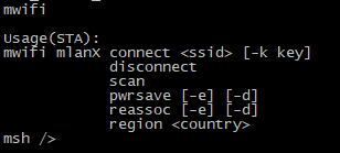 mwifi mlan0 connect SSID -k PASSWORD //连接SSID,密码PASSWORD
