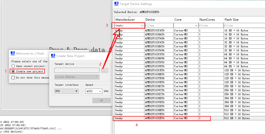 通过ENV工具的scons指令或MDK编译出bin文件后,再使用J-Flash工具将bin文件下载至开发板即可,大致步骤如下: