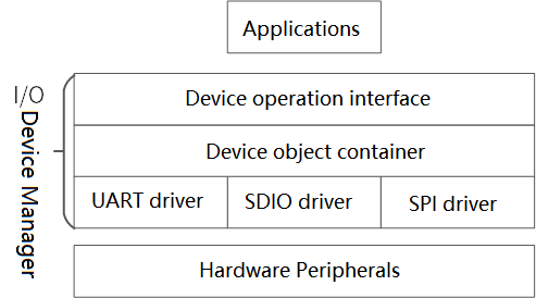 In the RT-Thread real-time operating system, a wide variety of device drivers are managed through a set of I/O device management frameworks. The device management framework provides a set of standard device operation APIs for upper-level applications, and developers can efficiently interact with the underlying hardware peripherals by calling these standard device operation APIs. The structure of the Device Management Framework is shown in the following figure: