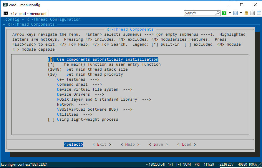 Open the Env tool in the BSP directory and enter the menuconfig command: