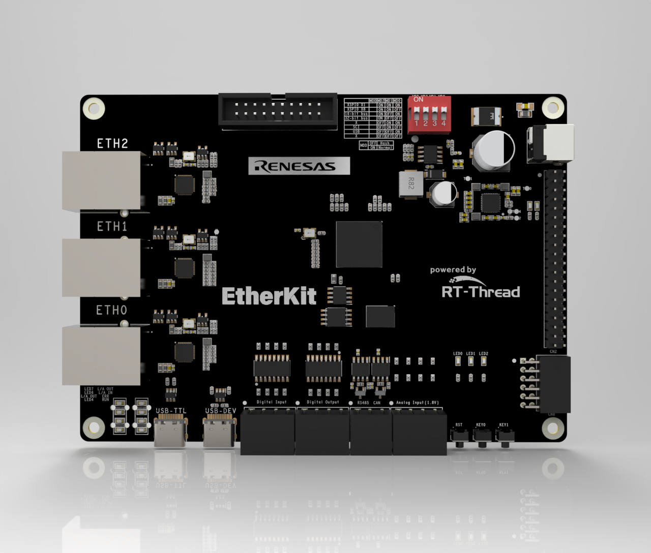 The EtherKit development board is based on the Renesas RZ/N2L and is designed to facilitate embedded system application development by offering flexible software package and IDE configurations.