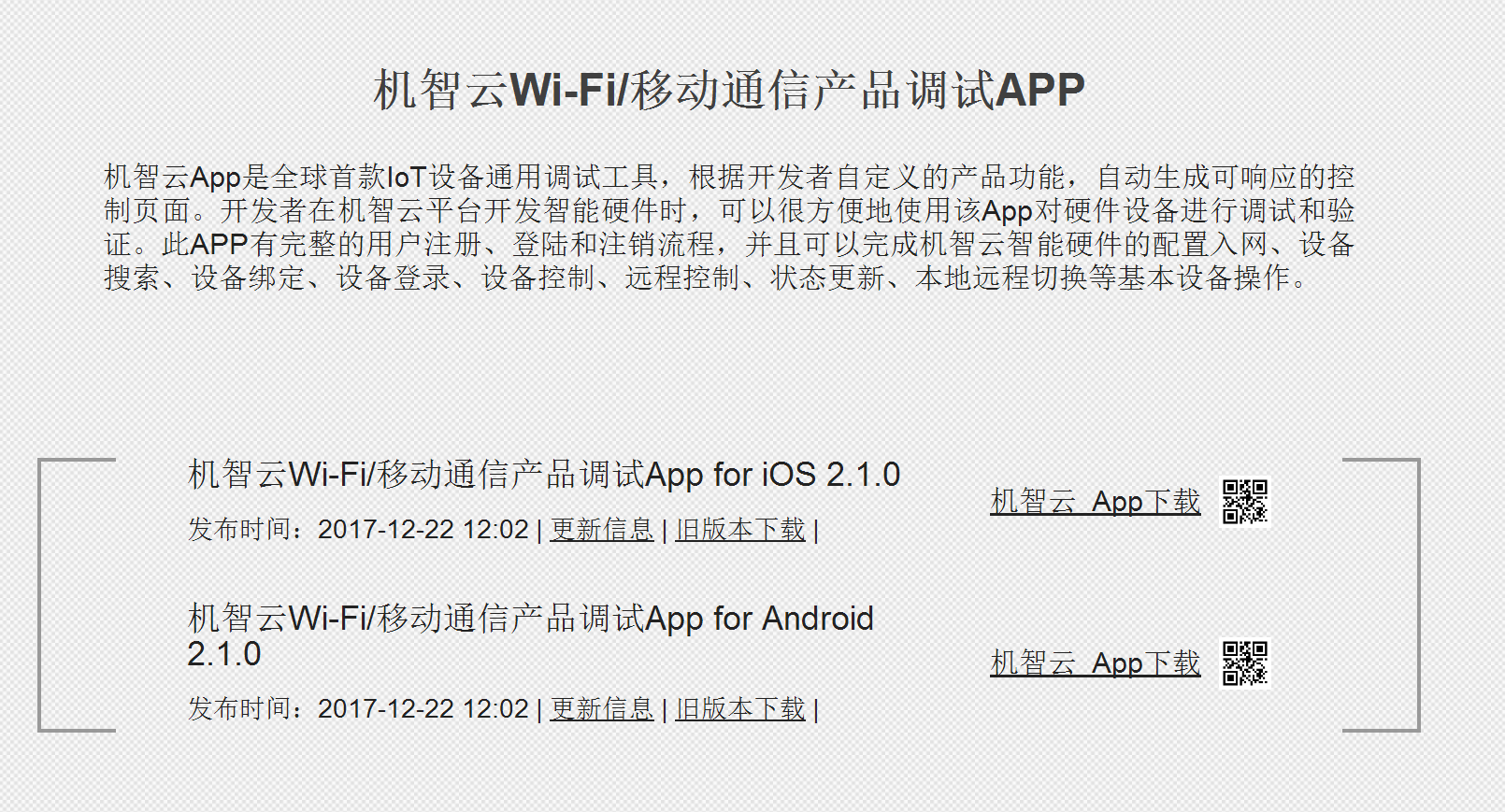 机智云APP下载:在下载中心->开发与调试工具下载机智云Wi-Fi/移动产品调试APP