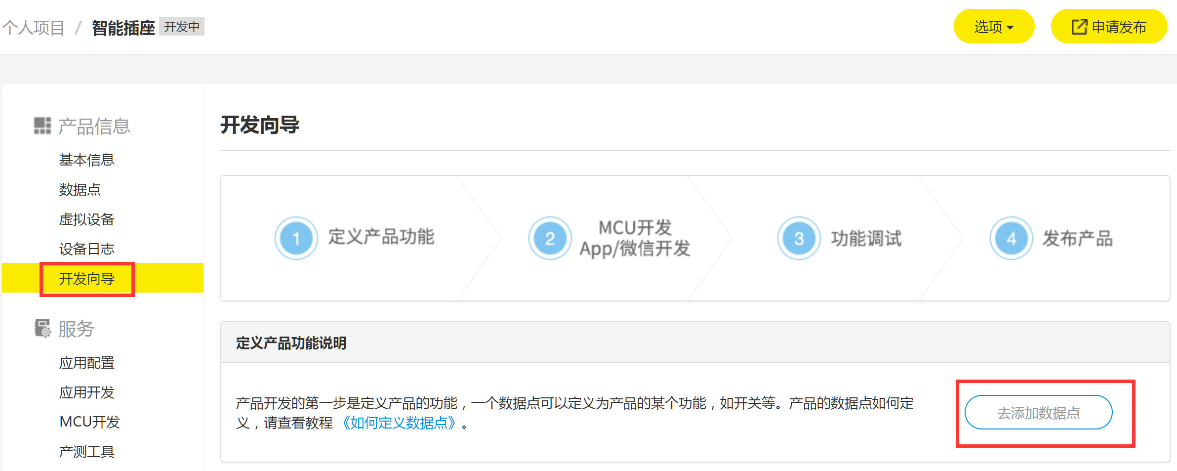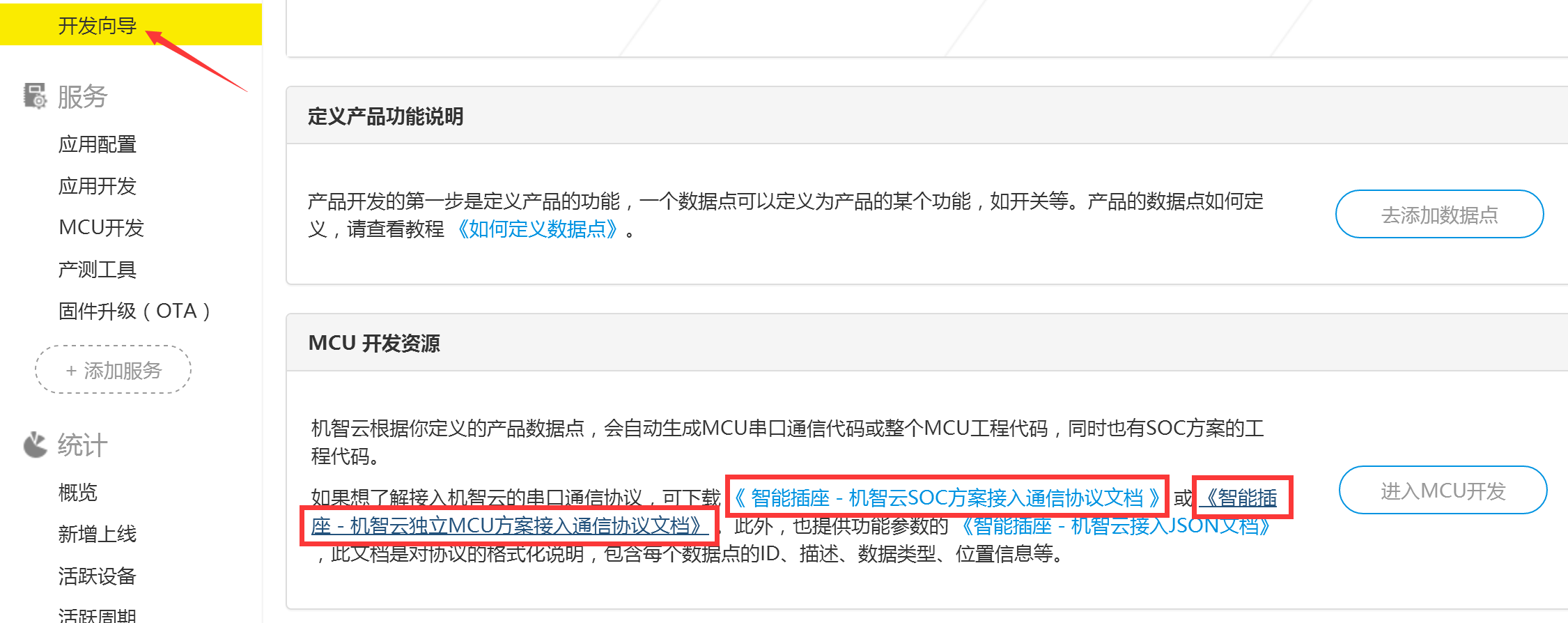 在开发向导页面下载当前定义产品的通讯协议文档,后续开发会用到。