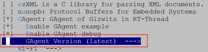 如在menuconfig中选中Enable GAgent Example,在编译过程中会加入GAgent package包中example目录下的gagent_cloud_demo.c。该文件完成GAgent初始化、参数读取/写入、命令下发等功能,可通过finsh/msh启动运行。