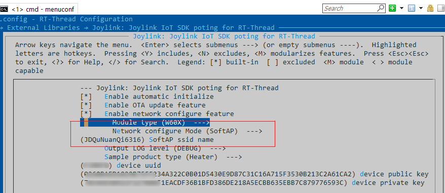 通过上述云端准备流程获取产品相关信息,之后可以在 menuconfig 中配置信息, menuconfig 配置如下: