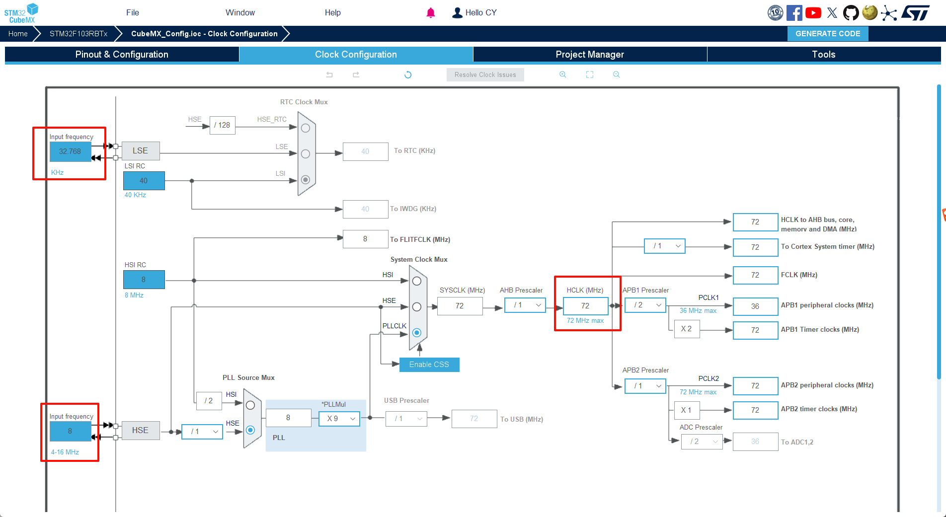 Configure the system clock, peripheral pins, etc. The steps are shown in the figure below: