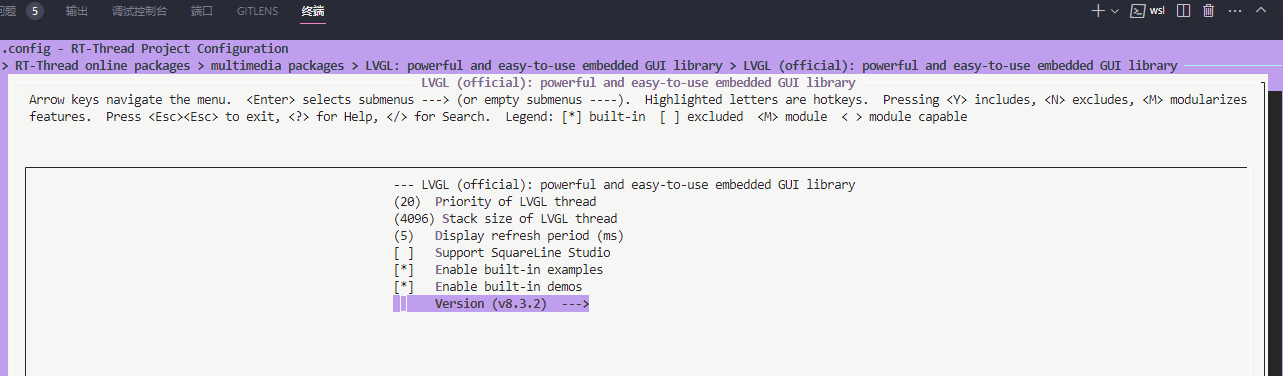 -1.在rt-thread menuconfig中选中lvgl,在ENV环境或ubuntu中使用pkgs --update 更新 packages: