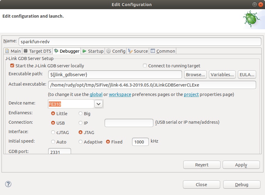 点击 Debugger 选项卡,选择设备名称 FE310