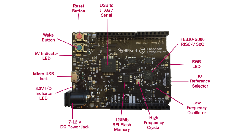 HIFIVE1 是由 SiFive 公司推出的全球首款基于开源指令集 RISC-V 架构的商用 SoC Freedom E310 的开发板。