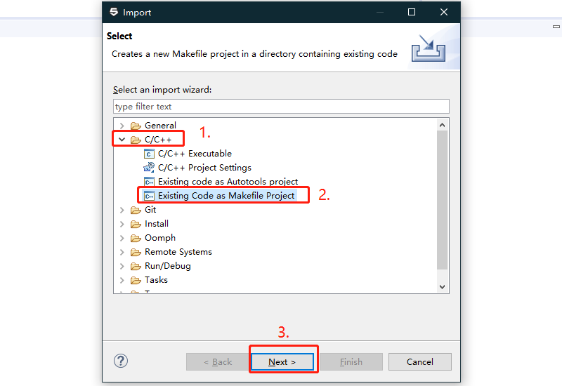 按照下面的图片导入工程